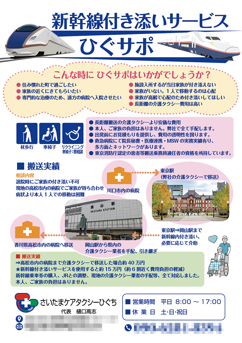 新幹線付き添いサービス・ひぐサポ・チラシ・フライヤーデザイン