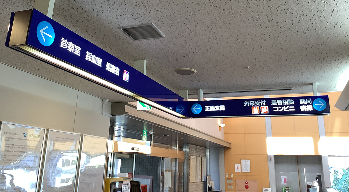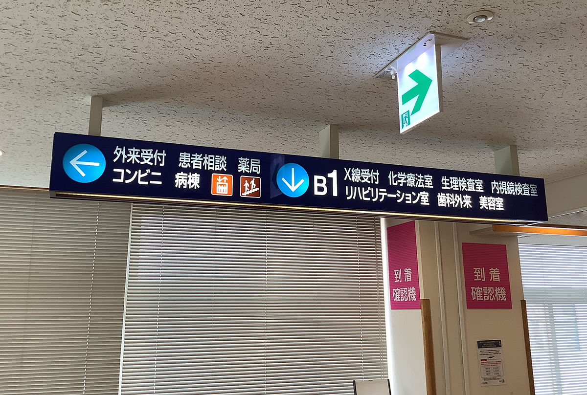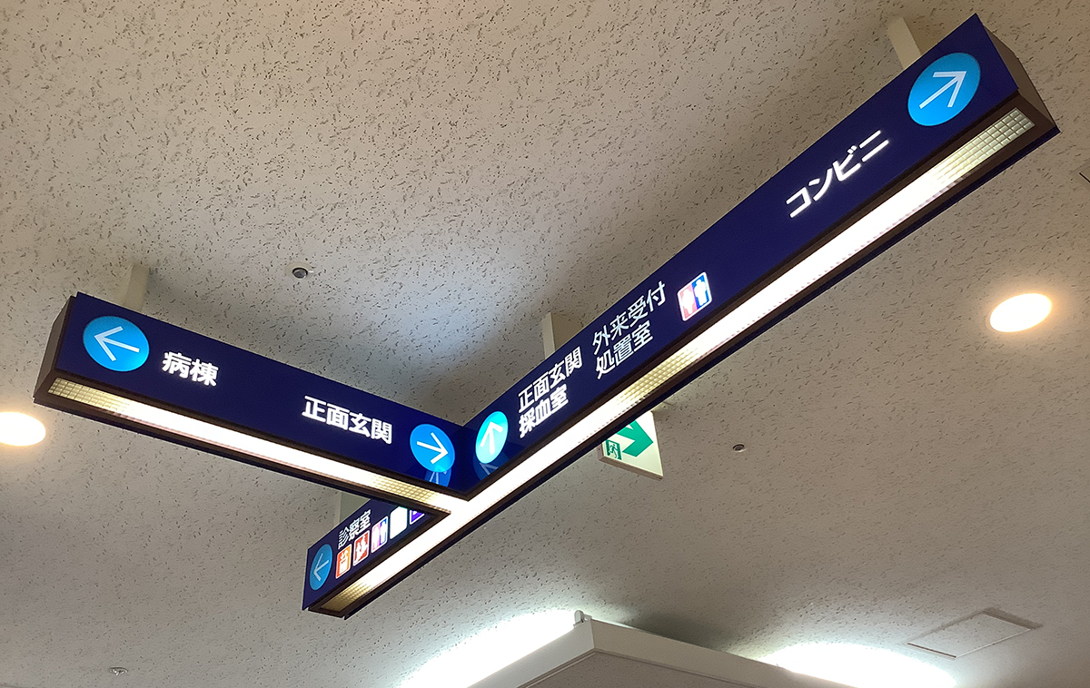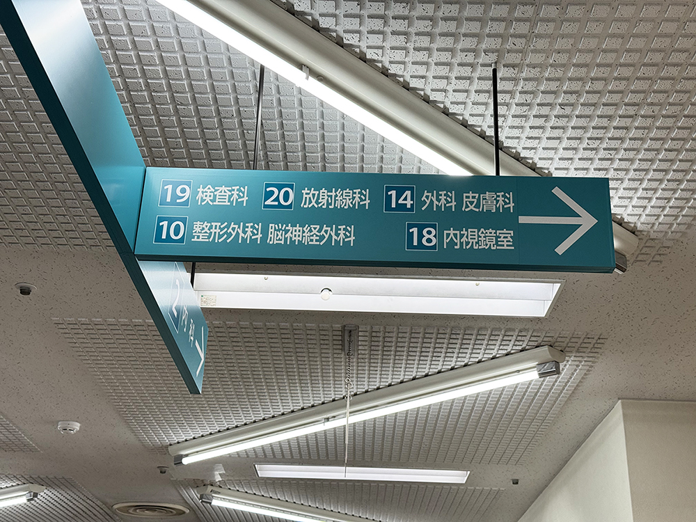 病院改装・院内誘導サイン・天吊りサイン・LED導光板などのリニューアル実例をご紹介