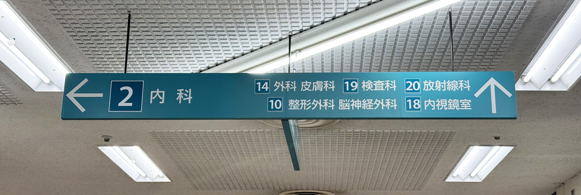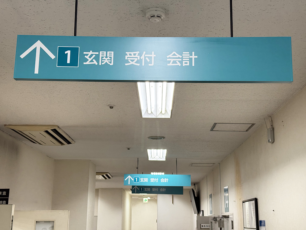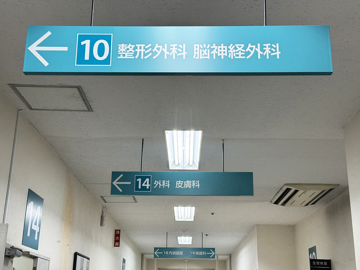 病院改装・院内誘導サイン・天吊りサイン・LED導光板などのリニューアル実例をご紹介